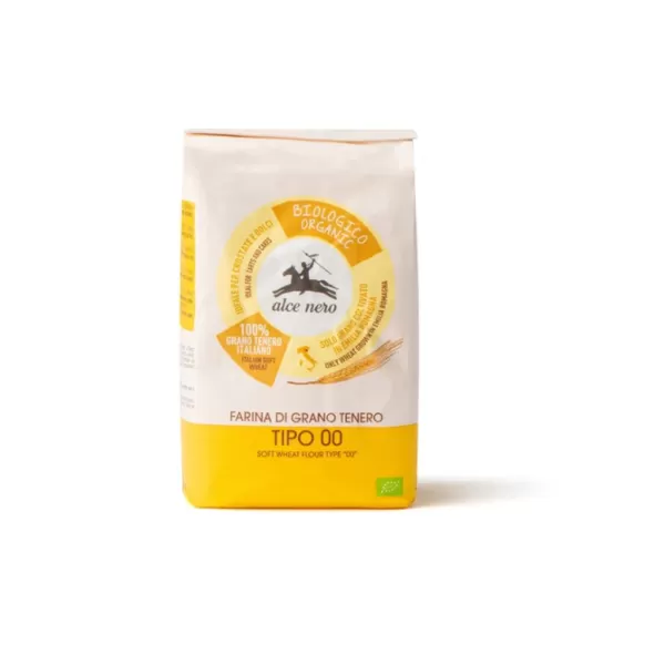 Az Alce Nero „00” típusú organikus búzalisztet csak az Emilia Romagna-ban termesztett organikus búza felhasználásával állítják elő, és különösen fehér színű, mivel csak a gabona szívét őrlik meg. Desszertek, kekszek és torták készítéséhez ajánlott.