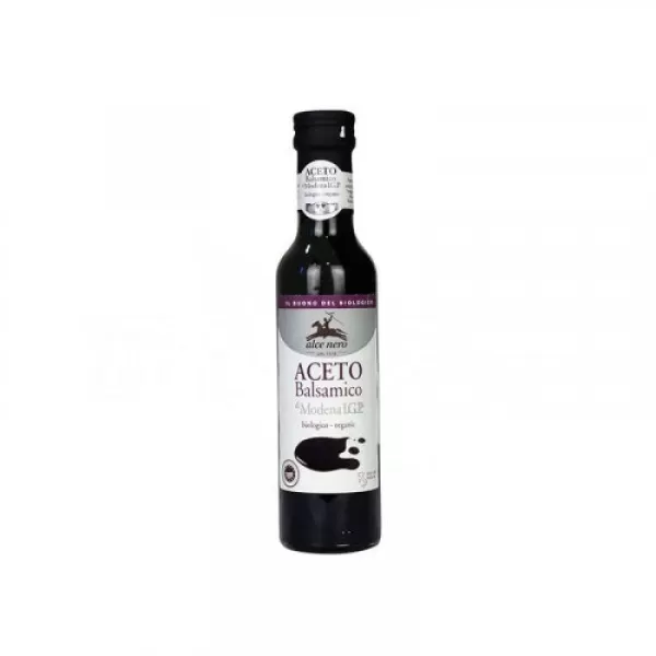 250 ml-es modenai balzsamecet; Alce Nero termék zöldségek, saláták ízesítéséhez. Grillezett ételekhez és sütőben sült zöldségekhez ajánljuk. A kiváló minőségű, finoman fűszerezett ecetspecialitás kellemes ízt ad salátáknak, zöldségételeknek.