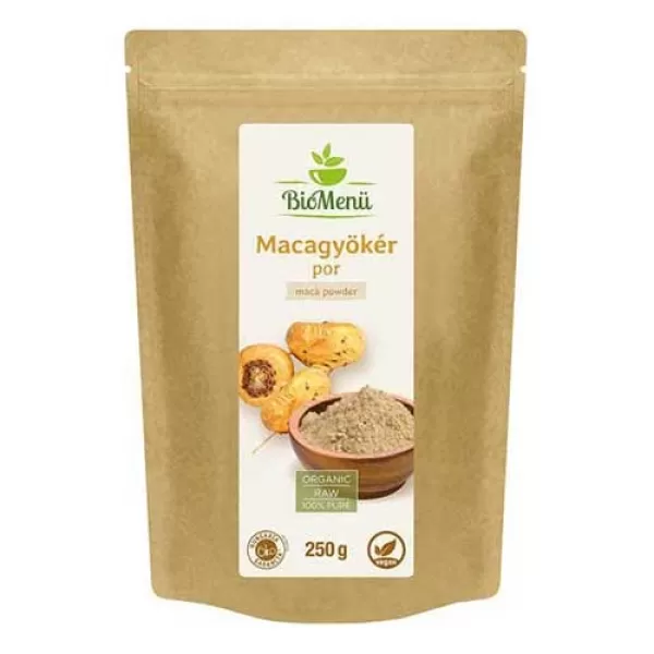Összetétel: 100% bio macagyökér (Lepidium meyenii). A termék bio, vegán, természetes alapanyagokból készült, és mentes minden mesterséges adalékanyagtól.