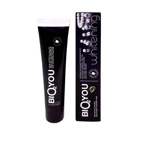 Natúr fogkrém aktív faszénnel, gyöngyporral, mentaolajjal, aloe vera-val és homoktövissel.