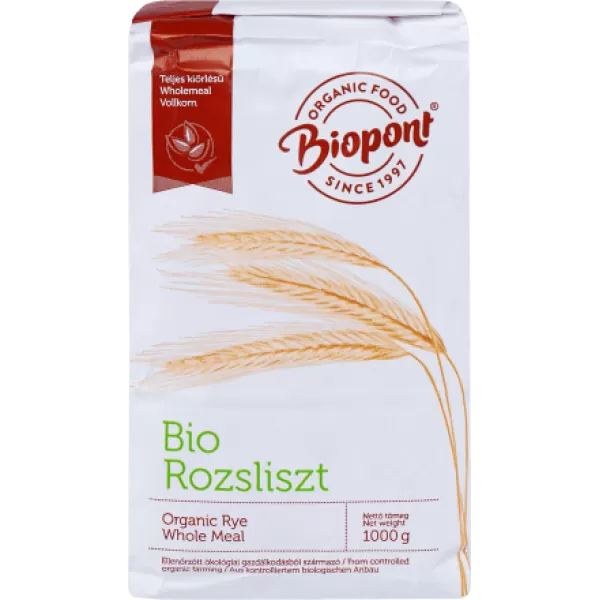 1000 g-os bio rozsliszt; Biopont termék kenyerek, pékáruk készítéséhez.