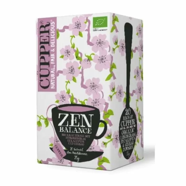 Cuppers Bio Zen Balance tea 20 db, összesen 35 g. A tea természetesen koffeinmentes.