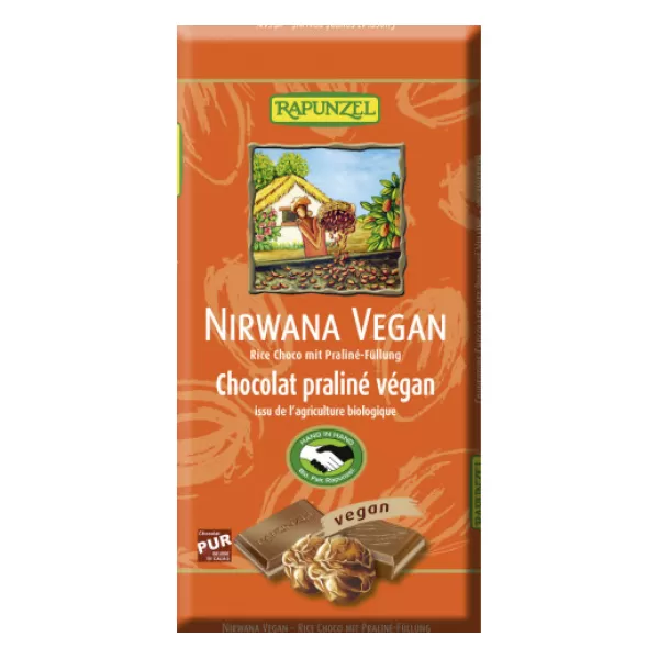 NIRVANA vegán csokoládé rizstejjel és trüffeltöltelékkel. Bio- HAND IN HAND termék. Eredeti svájci csokoládé.