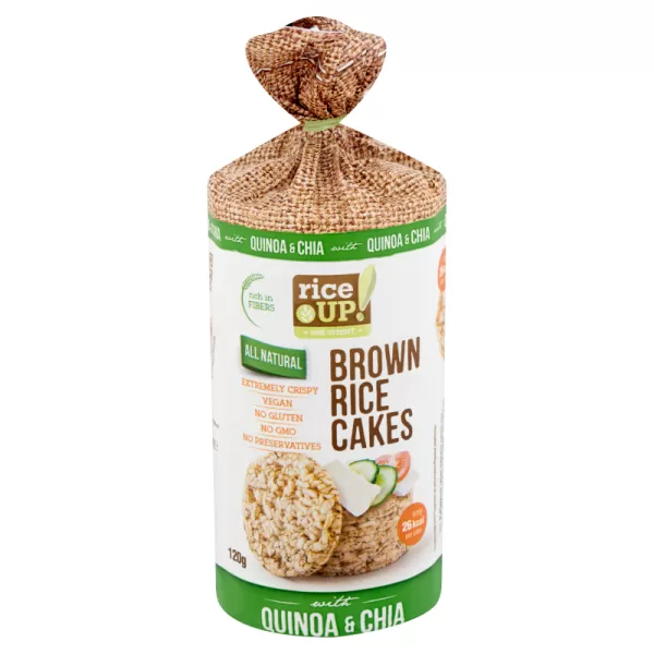 A Rice Up! puffasztott rizs szeletek teljes kiőrlésű barna rizsből és tökmaggal való ízesítéssel, egy egészséges és ízletes snack lehetőséget kínálnak.