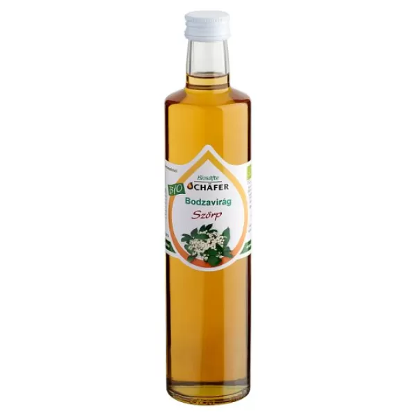 Bio bodzavirág szörp. Bio almalé-sűrítménnyel édesítve. Pasztörizált
